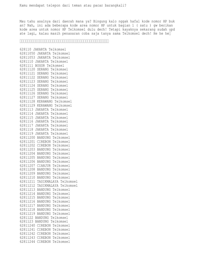Misal akan menelepon ke banjarmasin. Tapi di kode awalan itulah kita dapat mengetahui dari area mana nomor tersebut berasal. Daftar nomor whatsapp admin pandawa bpjs kesehatan se indonesia. Daftar kode area (hlr) nomor telkomsel terbaru 2021. Jadi, pada dasarnya nomor hp yang kita punya memiliki arti khusus dan tidak asal asalan.
